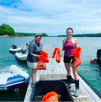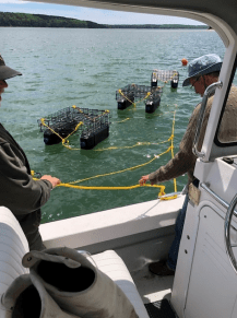 Split crop for overwintering: half to Downeast Institute, half sunk to the ocean bottom with the help of a diver