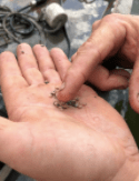 Quahog seed is retrieved from the ocean floor in the spring
