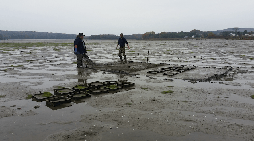 In 2009, the Shellfish Conservation Committee purchased clam seed from the Downeast Institute and studied soft-shell clam growth rate through a plant pot experiment and sowing seed plots. The following year, Penobscot worked with the area biologist on a clam recruitment study with lobster trap doors wrapped in plastic netting—the most successful models used AstroTurf. The study ended in 100% mortality, mainly due to moon snails. On a positive note, 2010 also saw the reopening of most of the town’s flats from water quality issues.